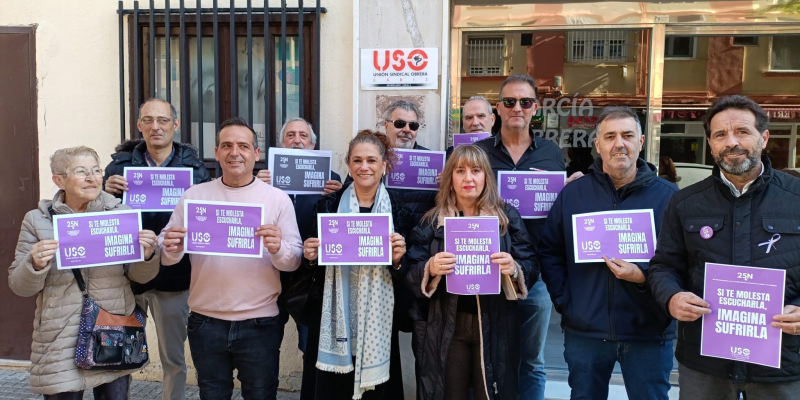 En el marco del Día Internacional de la eliminación de la Violencia contra la Mujer, USO cádiz se ha concentrado frente a sus instalaciones como el resto de uniones de Andalucia, en esta concentración han participado una representación de todas las federaciones de nuestro sindicato, para luchar contra la erradicacion de la Eliminación de la Violencia contra la Mujer, con el lema: