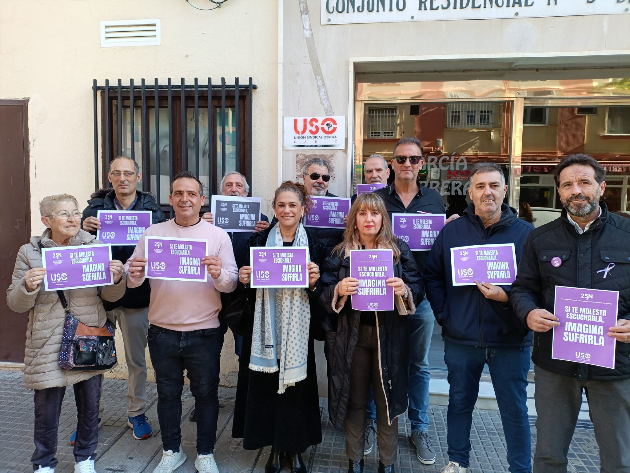 En el marco del Día Internacional de la eliminación de la Violencia contra la Mujer, USO cádiz se ha concentrado frente a sus instalaciones como el resto de uniones de Andalucia, en esta concentración han participado una representación de todas las federaciones de nuestro sindicato, para luchar contra la erradicacion de la Eliminación de la Violencia contra la Mujer, con el lema: