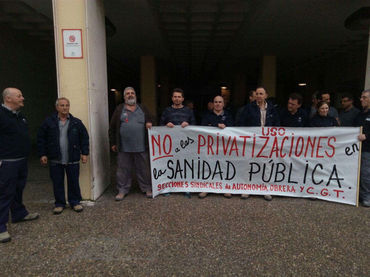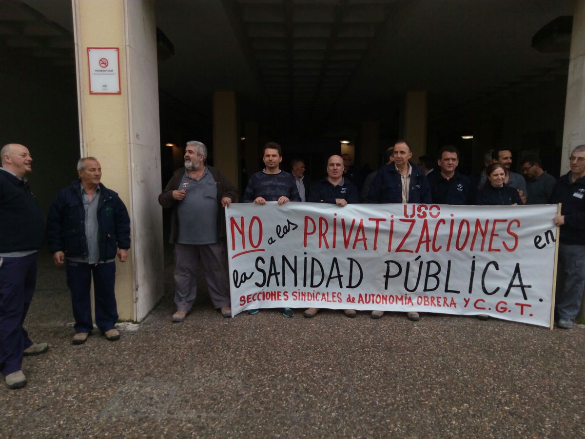 Hoy día 3 de abril de nuevo nuestros compañeros se han concentrado en los exteriores del Hospital Puerta del Mar en defensa de sus puestos de trabajo y contra la privatizaciónes de la sanidad pública