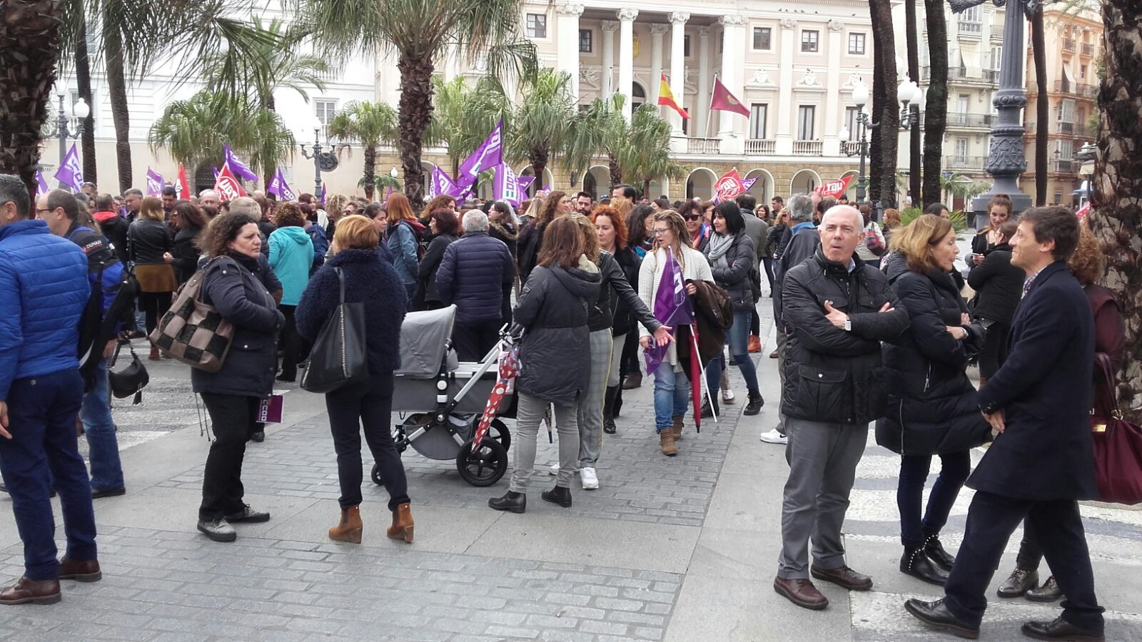 Los delegados y delegadas de USO Cádiz han estado presentes en las concentraciones realizadas en distintos puntos de la ciudad, en la Plaza del Palillero y Plaza de San Juan de Dios, tras los paros convocados por USO a nivel nacional, reclamando al Gobierno una apuesta seria y una regulación especifica en materia laboral que aborde la realidad de la mujer en el mercado de trabajo y elimine en las empresas e instituciones las diferencias por razones de género, con el fin de conseguir la igualdad de oportunidades entre mujeres y hombres en el mercado laboral, de eliminar la brecha salarial y el techo de cristal.