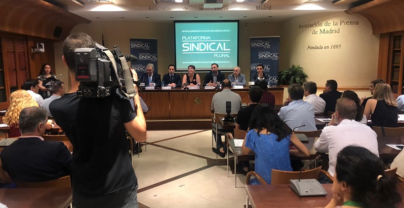 Madrid, 3 de julio de 2019.- Los sindicatos Unión Sindical Obrera (USO), Federación de Trabajadores Independientes de Comercio (Fetico), Sindicato de Enfermería (SATSE), Asociación Nacional de Profesionales de la Enseñanza (ANPE), Confederación de Cuadros y Profesionales (CCP), Sindicato de Técnicos del Ministerio de Hacienda (Geshta) y Confederación de Seguridad Local (CSL) han presentado esta mañana en Madrid la Plataforma Sindical Plural (PSP), un nuevo espacio sindical “que une sus fuerzas con el objetivo común de llevar a cabo una regeneración sindical en España, que devuelva el modelo bisindicalista actual al pluralista por el que apostaba la Constitución y que después fue desvirtuado por el desarrollo del Estatuto de los Trabajadores, la Ley Orgánica de Libertad Sindical y el Estatuto Básico del Empleado Público”, resume Sara García, portavoz de la Plataforma.
