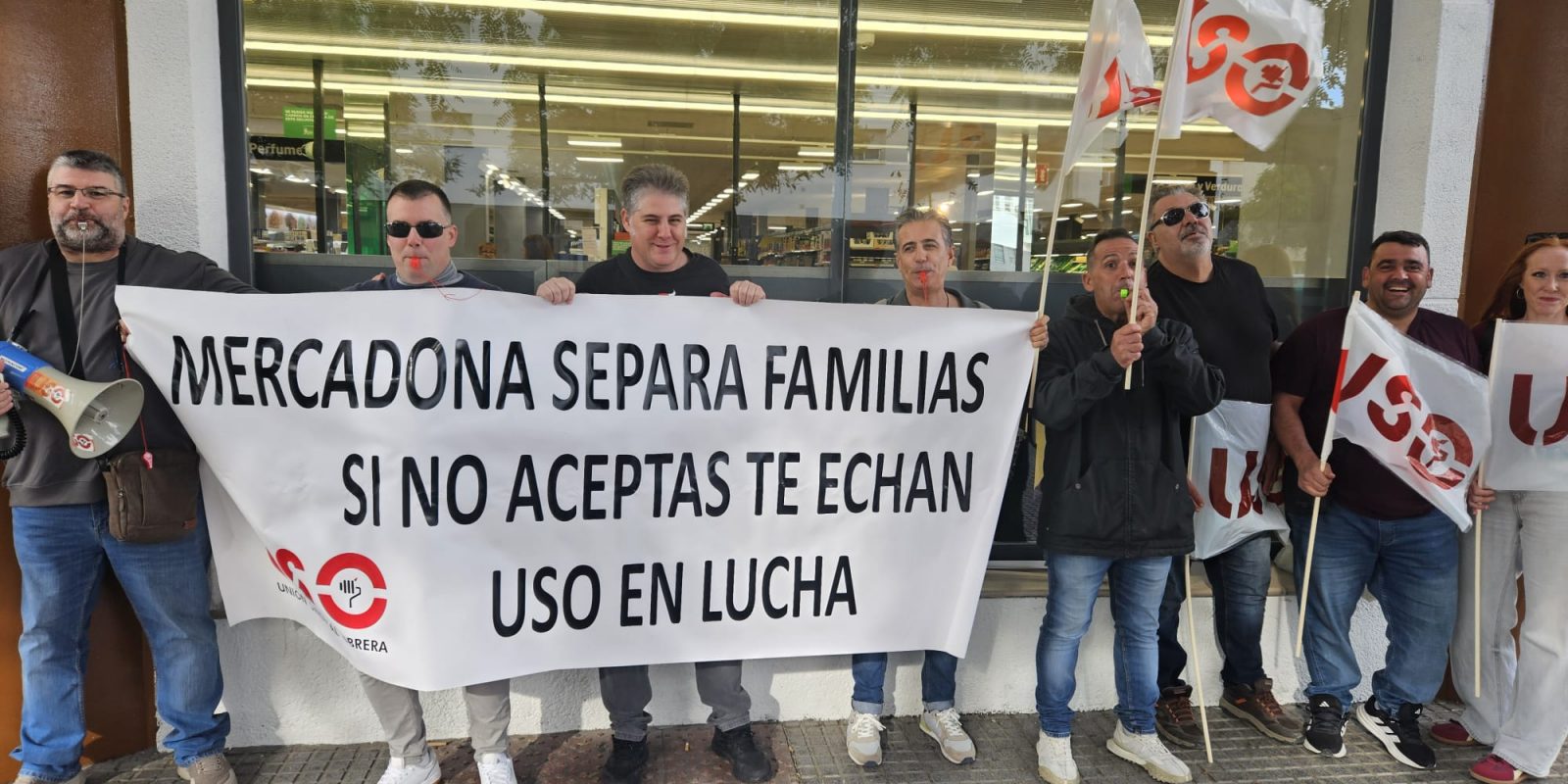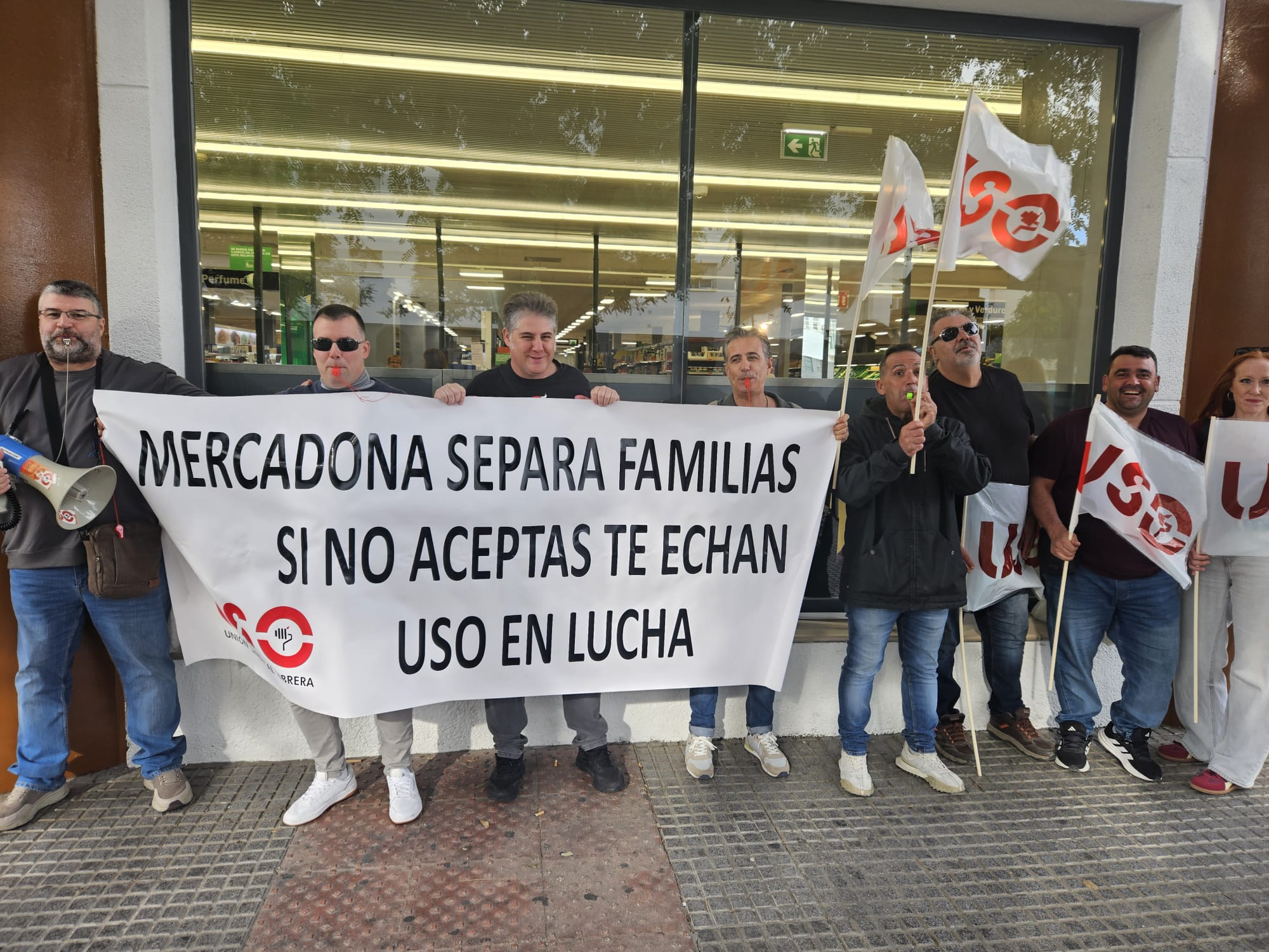 USO Cádiz ha organizado una concentración en la puerta del supermercado MERCADONA, para reclamar la conciliación familiar de nuestra afiliada a la que se le ha denegado un cambio a otra ciudad para poder estar con su familia, que le ha sido denegado.